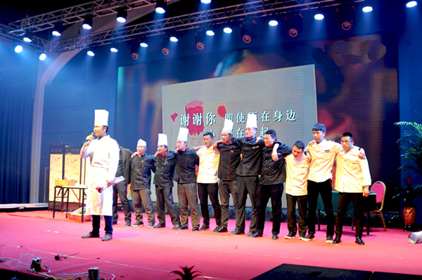 迪尼斯酒店伊川店后廚部員工表演的走心小品《傻大個成長之路》反映了公司員工的誠實品德和成長成材歷程,獲得一等獎,獎勵3000元;